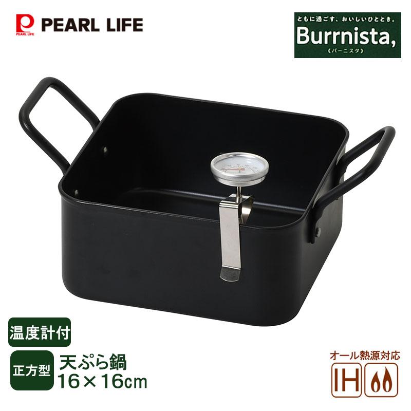 パール金属 バーニスタ 鉄製温度計付正方型天ぷら鍋 16×16cm HC-0948