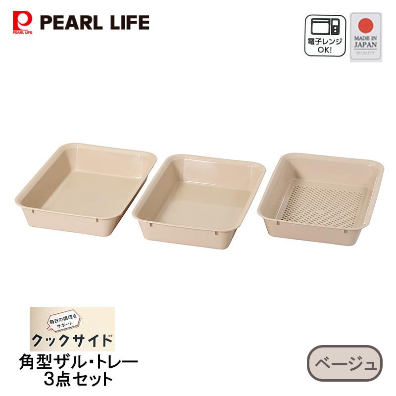 パール金属 クックサイド 角型ザル・トレー3点セット ベージュ HC-1010