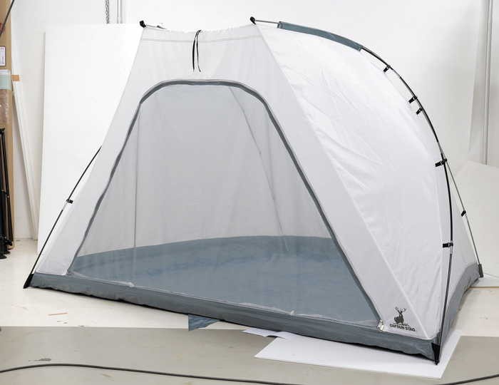 ワンポールテント オクタゴン460UVのフライのみで装着すれば、テント内にリビングスペースと居住スペースを確保できます。