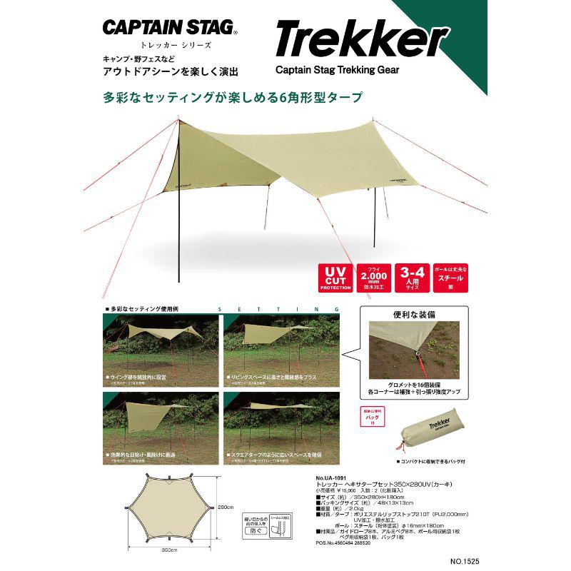 キャプテンスタッグ トレッカー ヘキサタープセット350x280UV UA-1091