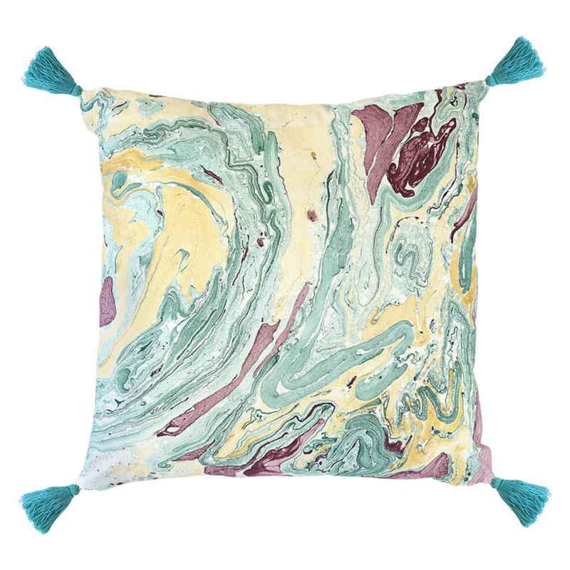 手作業で施されたマーブル模様のクッションカバーです。