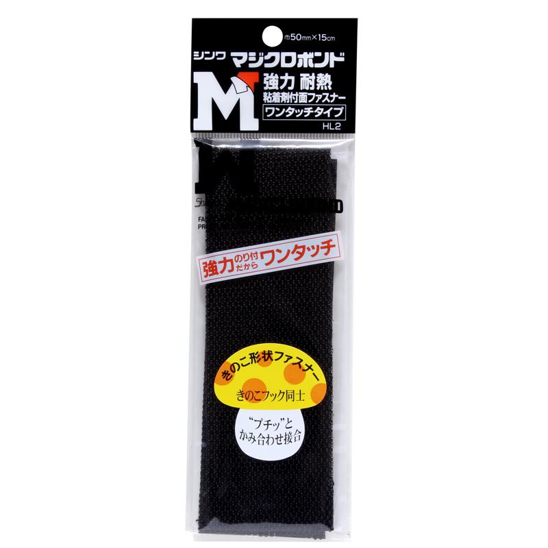 マジクロボンド 粘着剤付面ファスナー 黒 50mm×15cm 2枚入り 伸和 (1H56UC)
