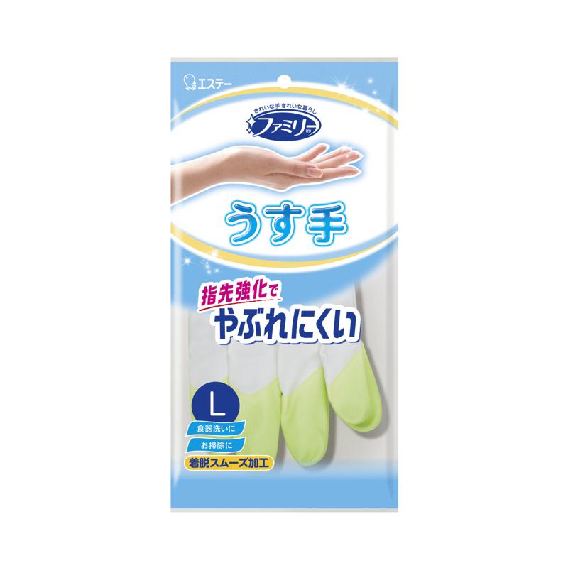 エステー ファミリー ビニールうす手 指先強化 Lサイズ グリーン 1双 手袋/炊事手袋