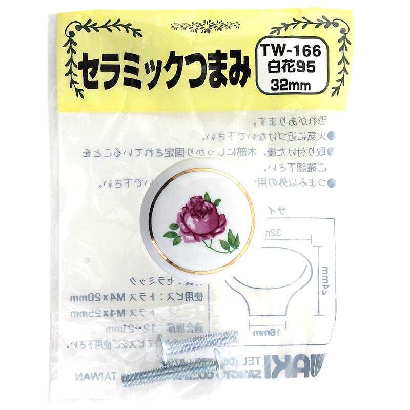 セラミックつまみ 白花95 32mm×16mm×24mm 白花95 WAKI(和気産業) (TW-166)