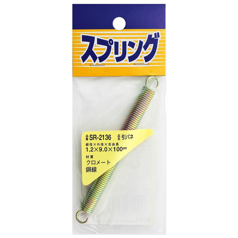鉄引きバネ 線径1.2mm×外径9mm×自由長100mm WAKI(和気産業) (SR-2136)