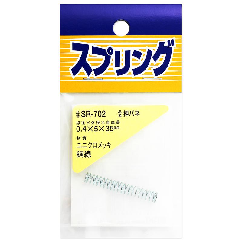 ユニクロメッキ 押バネ 線径0.4mm×外径5mm×自由長35mm WAKI(和気産業) (SR-702)