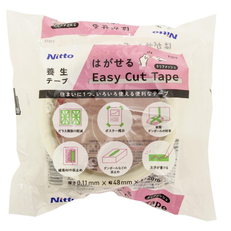 養生テープ はがせる Easy Cut Tape クリアメッシュ 0.11×48mm×20m ニトムズ (T1513)