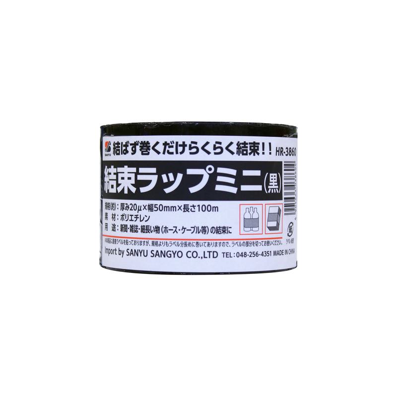 結束ラップミニ 黒 50mm×100m×厚み20μ 三友産業 (HR-3860)