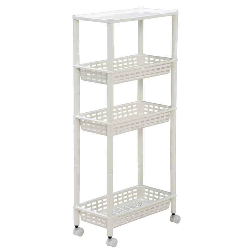 散らかる小物やストック類などをすっきりと整頓できる、樹脂製の4段ワゴンです。
