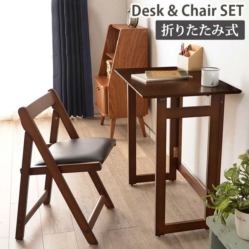 萩原 折りたたみデスク&チェアVCT-7699DBR ダークブラウン デスク チェアー 折りたたみ 木製 PCデスク