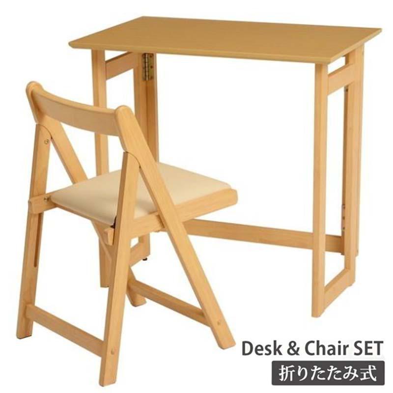 萩原 折りたたみデスク&チェアVCT-7699NA ナチュラル デスク チェアー 折りたたみ 木製 PCデスク
