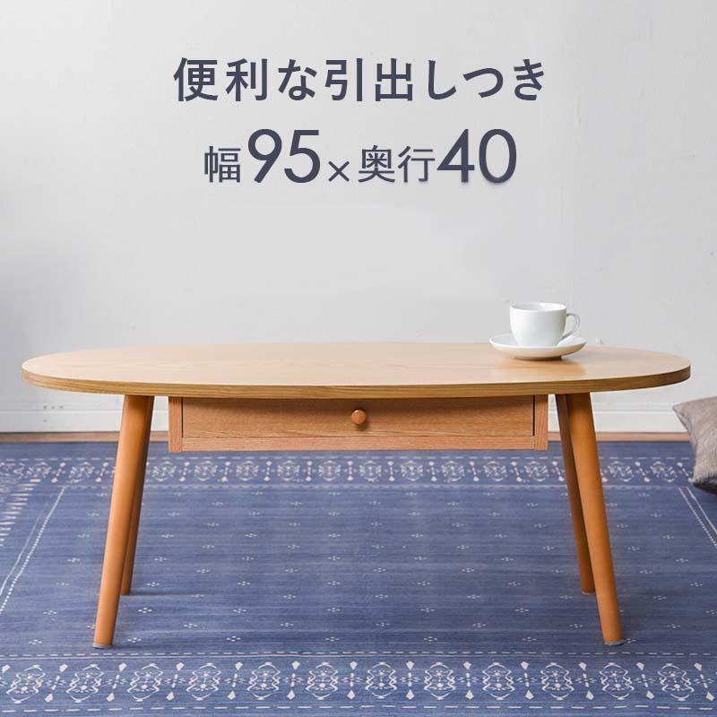 萩原 テーブル MT-6350NA ナチュラル リビングテーブル 木目 引出 オーバル ローテーブル