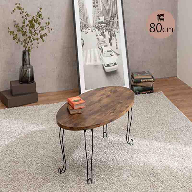 萩原 折れ脚 テーブル MT-6864BR 丸型/ ブラウン 80x40cm アイアン 猫脚