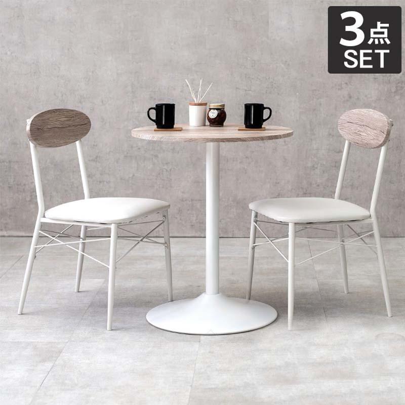 萩原 テーブル&チェア3点セット LT-4918WH78WH-S 丸型/ホワイト ダイニングセット テーブル チェアー