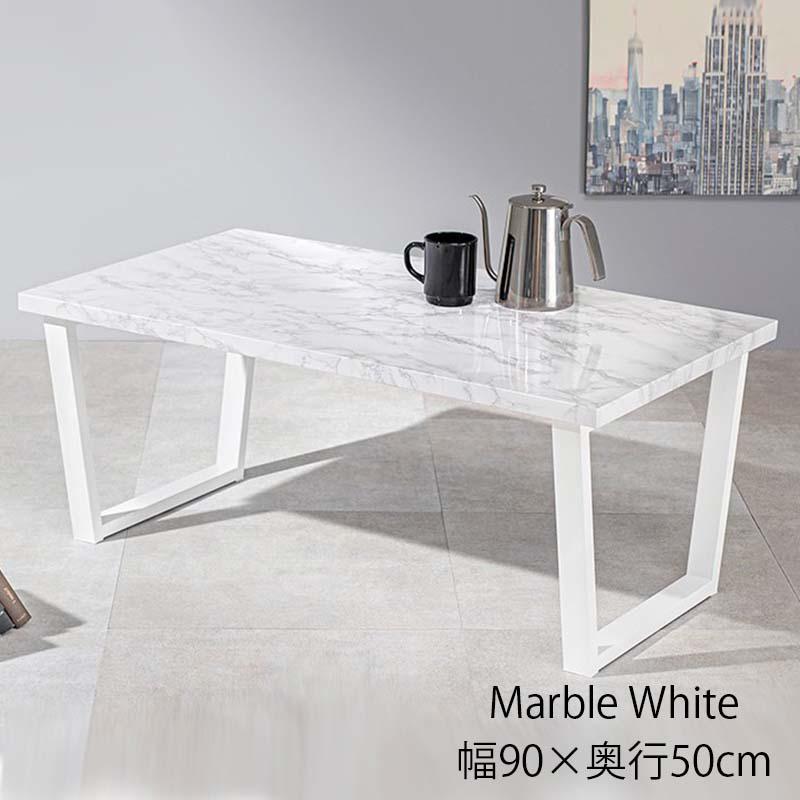萩原 フリーテーブル LT-4395MWH マーブルホワイト センターテーブル 幅90x奥行50cm