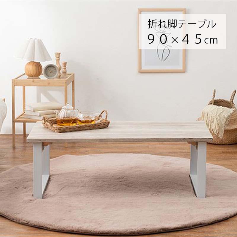 萩原 折れ脚 テーブル LT-4396WH ホワイト センターテーブル 90x45cm 折りたたみ式