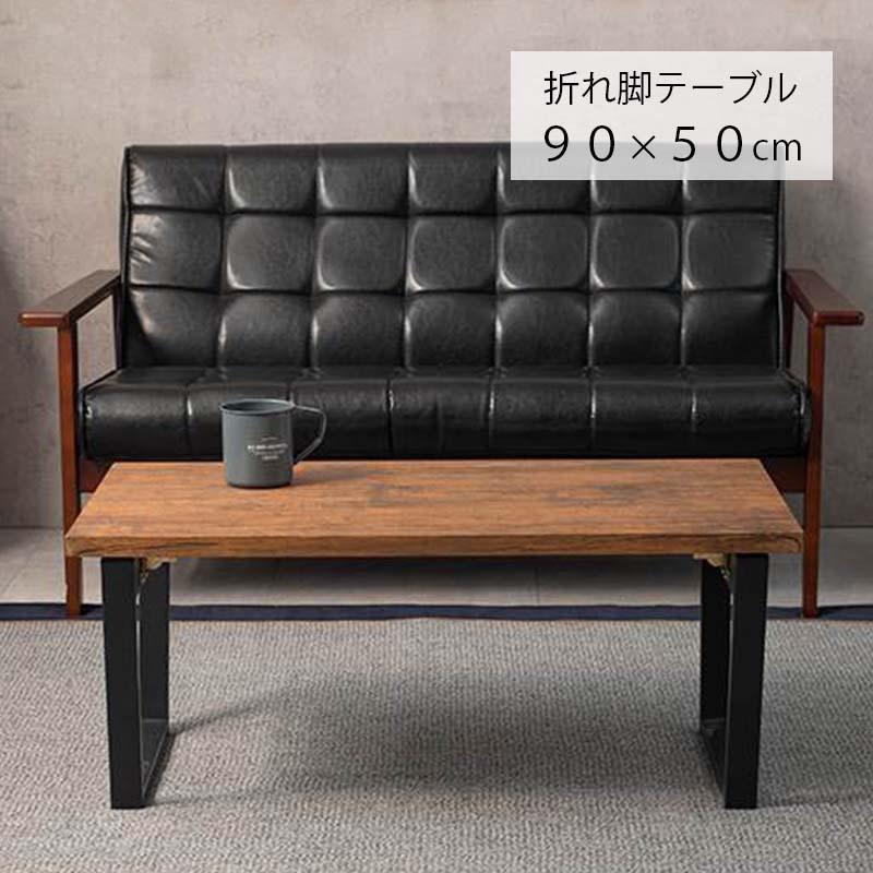 萩原 折れ脚 テーブル LT-4397BR ブラウン センターテーブル 90x50cm 折りたたみ式