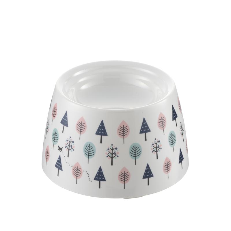 高さがある食器なので負担が少ない姿勢で食べられます。陶器のようなやさしい質感の食器プラスチック製なので、水洗いできてお手入れ簡単です。ゴム脚付きなので、ズレにくく床をキズつけません。縁はフードがこぼれにくい二段形状で、中央に集まりやすいお椀型です。持ち運びやすい手掛け部があります。