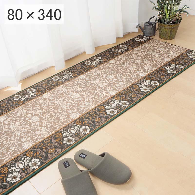 廊下敷き 80×340 グリーン タフトプリント廊下敷き エレガンス 240616826