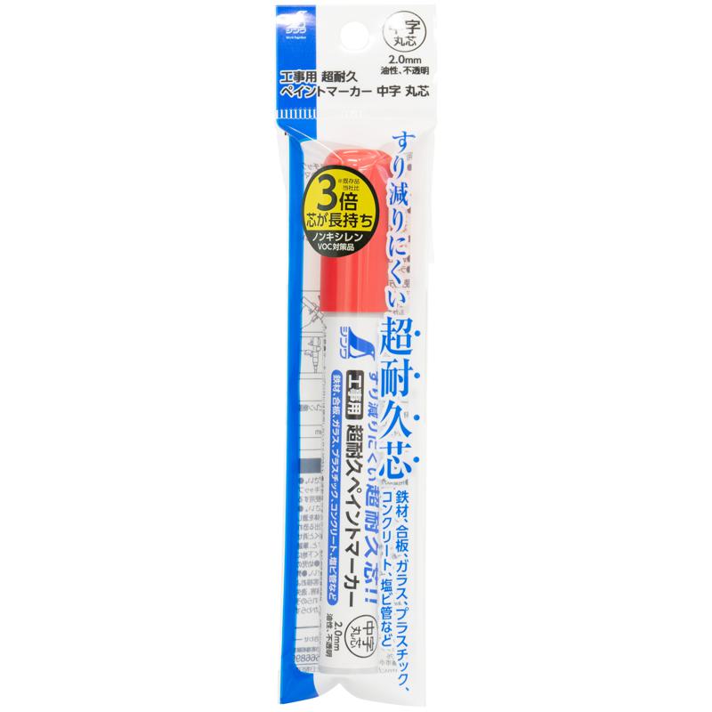 シンワ測定 工事用 超耐久ペイントマーカー 赤 中字 丸芯 79303