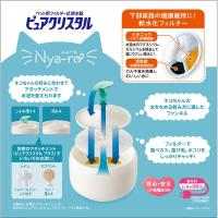 アソビゴコロ満点のピュアクリスタル誕生!。猫ちゃんの好みに合わせてアタッチメントで水流を変えられます。猫ちゃんの水をなめる飲み方に適したファンネル。フィルターで食べカス、抜け毛、ホコリをしっかりキャッチ!