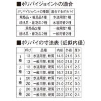 ●普及品●ソーラー用に使用できます。●材質 黄銅 注:ポリパイジョイントは露出で使用される場合、6カ月ごとに点検し、増締めをする必要があります。 2004年以降のJIS K6761一般用1種、2種には使用できません。