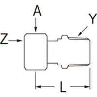 ●袋ナット回転式●材質 黄銅●パッキン付(ノンアスベスト) 注:寸法図中のAは六角対辺です。