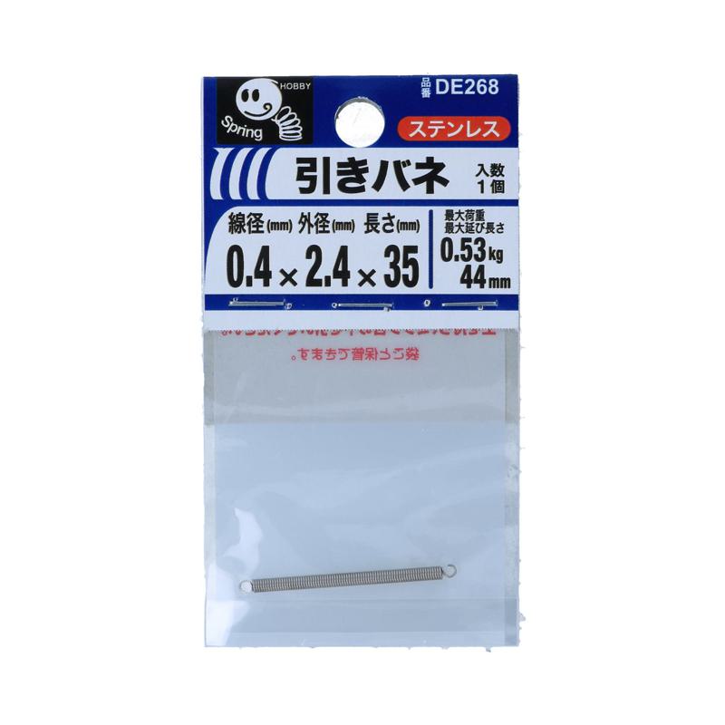 ●用途:密着で巻かれ、両端にフックが付いています。●材質:ステンレスSUS304 ●呼び径:0.4 ●長さ・厚み:35 ●外径・幅:2.4