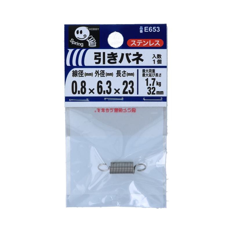 ●用途:密着で巻かれ、両端にフックが付いています。●材質:ステンレスSUS304 ●呼び径:0.8 ●長さ・厚み:23 ●外径・幅:6.3