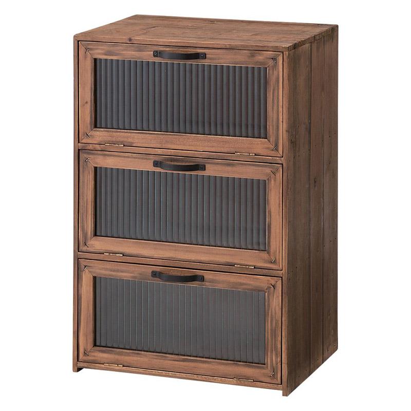 キャビネット ガラス 扉付き たんす 収納棚 収納ボックス おしゃれ 完成品 ブラウン フラップチェスト CCR-107 東谷