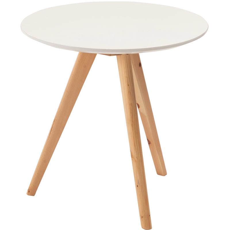 ホワイトの天板と天然木の脚の組み合わせが温かみのある印象を与えてくれるサイドテーブル。