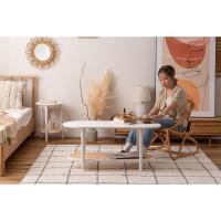 ポリエチレン素材のラタン調デザインが目を引く丸みを帯びたフォルムのテーブルは、クールなイメージにもガーリーなイメージにもマッチするデザイン。