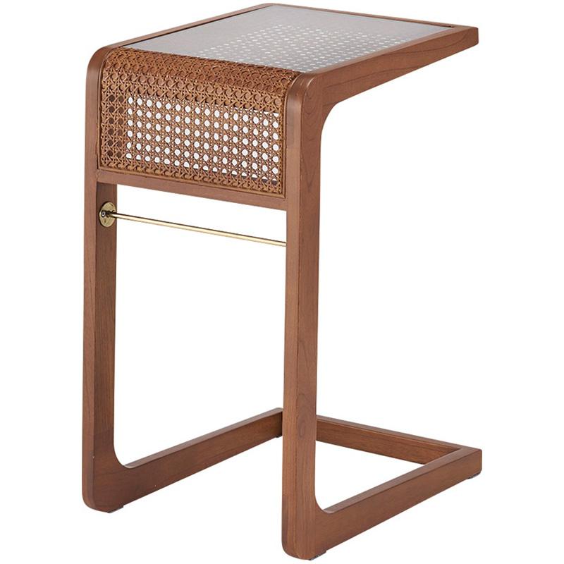 東谷 サイドテーブル ラタン 籐 テーブル 机 ガラス天板 PM-502BR
