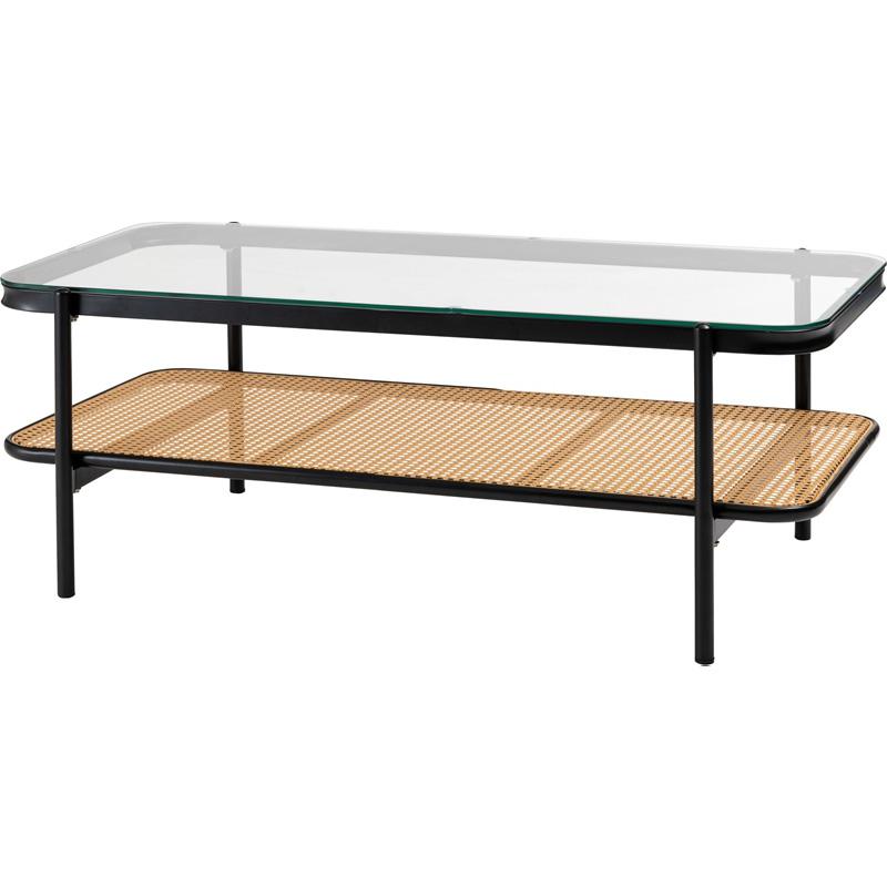 ブラックフレームと人工ラタンを組み合わせた、スタイリッシュさと温かみを兼ね揃えたリビングテーブル。