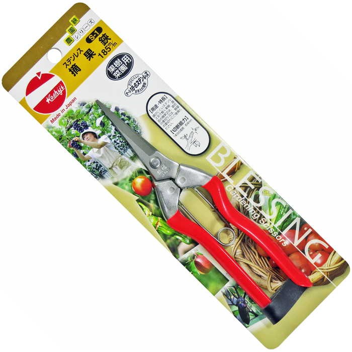 錆びにくいステンレス刃で軽く、果樹・園芸の摘果、又は草花・野菜の芽切りなどに向いているハサミです。