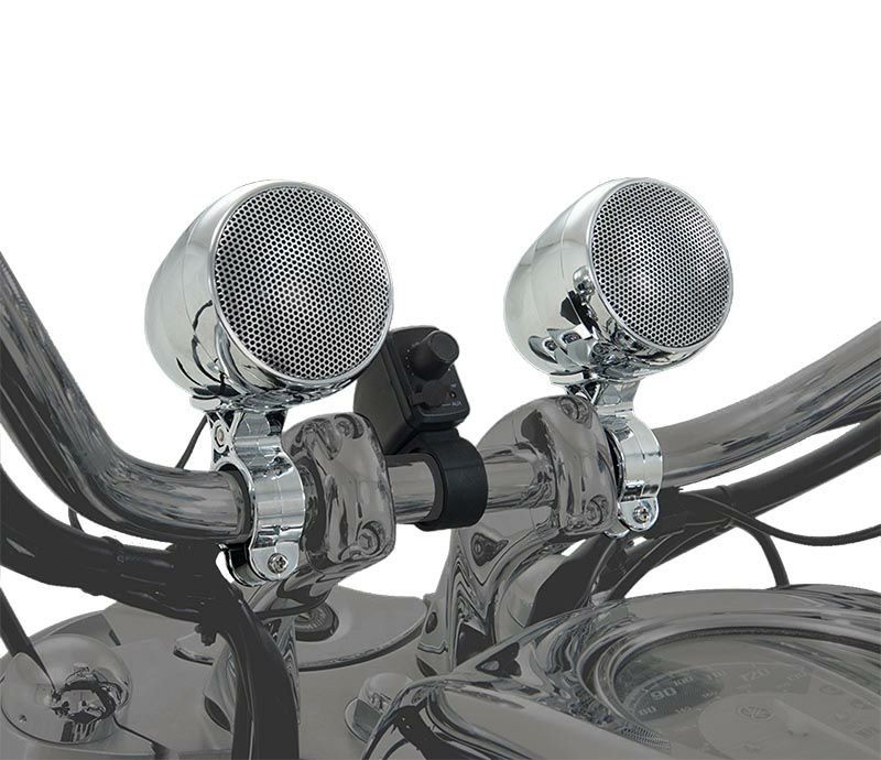 ビッグバイクパーツ 13-250A 防水スピーカー(アンプ付き) クローム 1インチ(25.4mm)ハンドル搭載車
