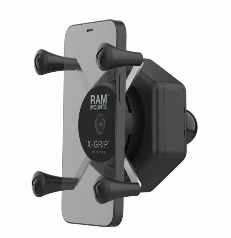 ラムマウントの「Xグリップ」は汎用性が高く、スマホケース付きの端末でもしっかりとホールドできます。