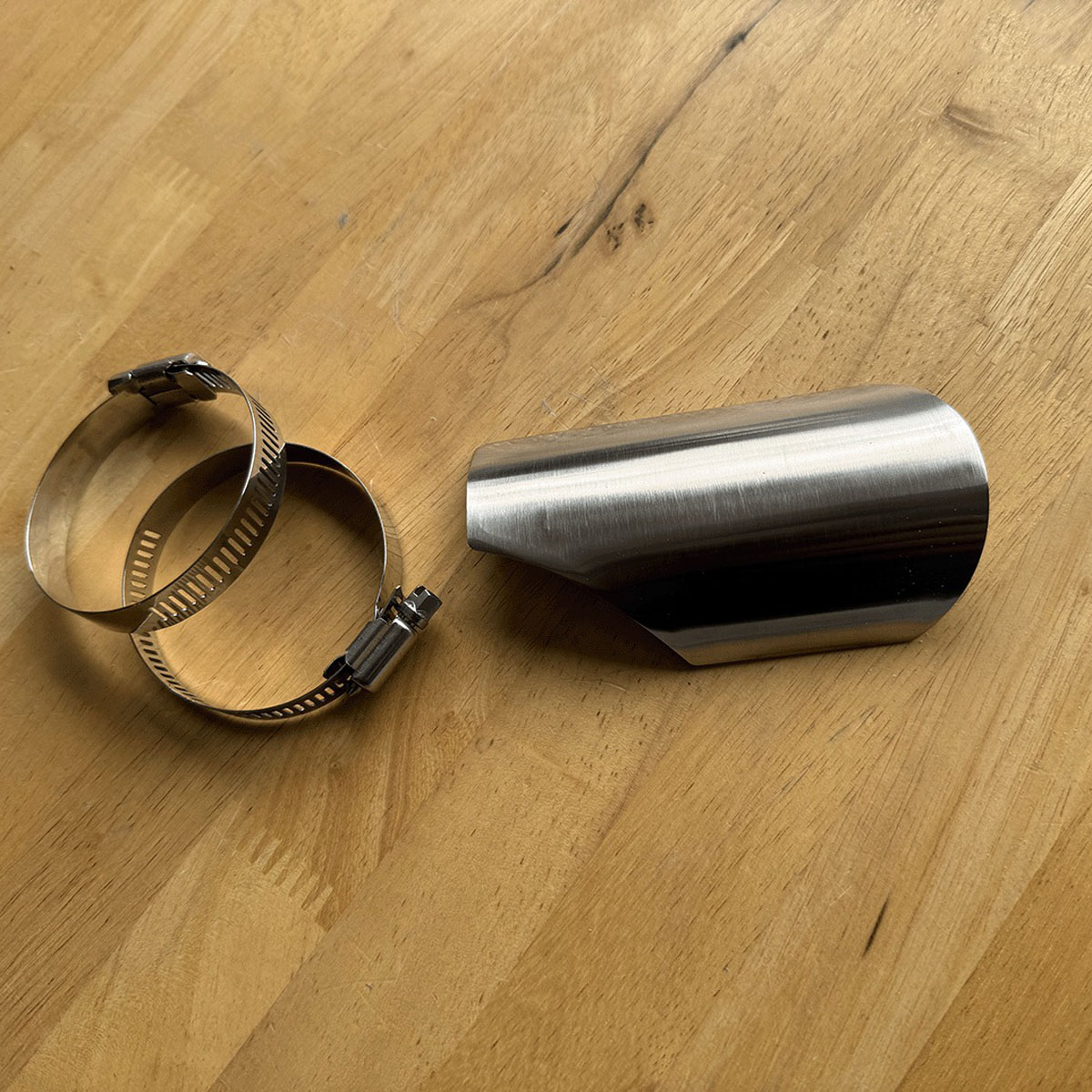 ●Stealth Pipes(ステルスパイプス)の2-1エキゾーストに付属のホースクランプ2本でしっかりと固定できます