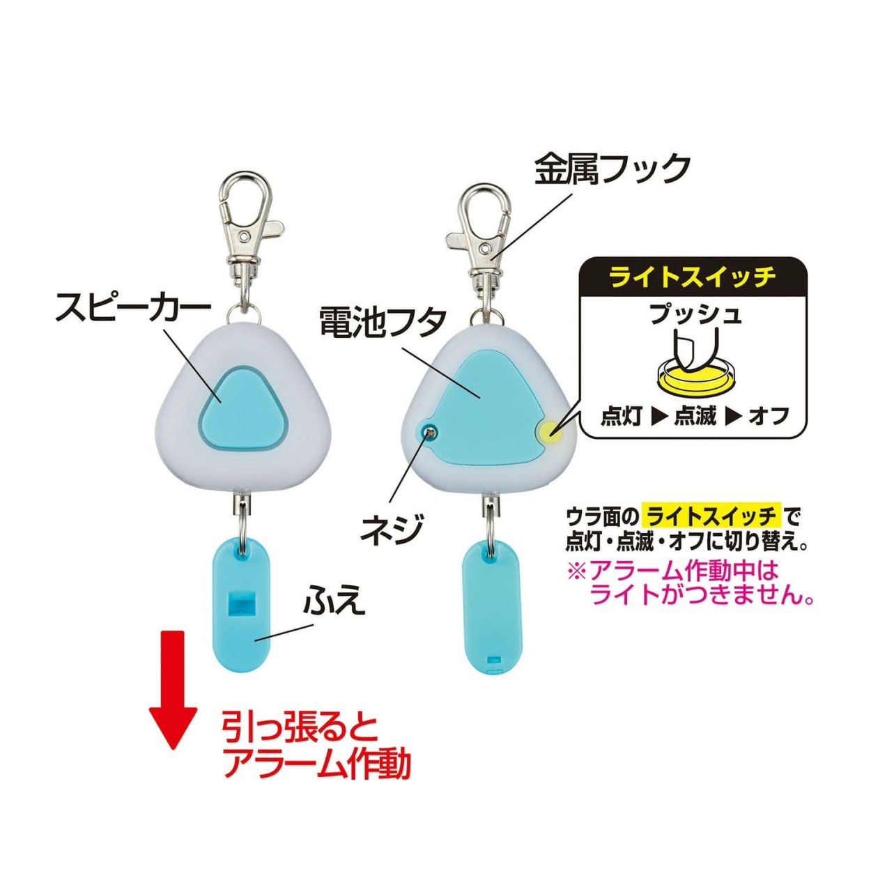 ・雨にも強い生活防水レベル。電池が切れても使える高適音で危険を知らせる笛付き。