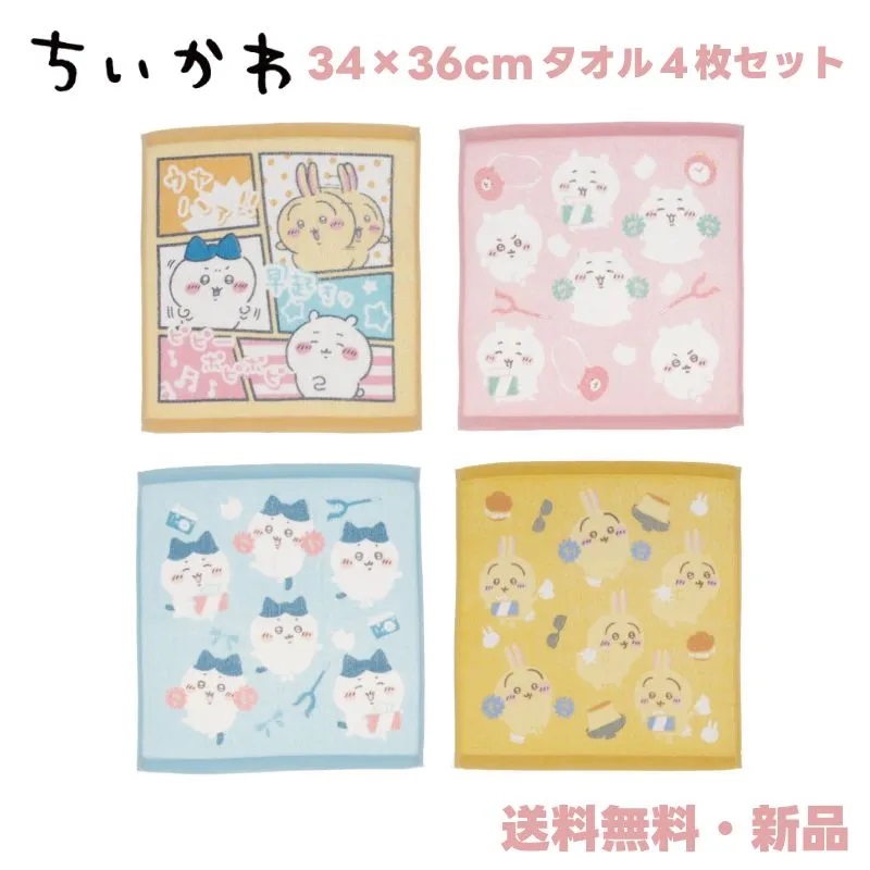 ちいかわ タオル 4枚セット ハチワレ うさぎ ハンドタオル 34×36cm 入園準備 入学準備 子ども キッズ ハンカチ フェイスタオル 大きめ タオル4枚セット