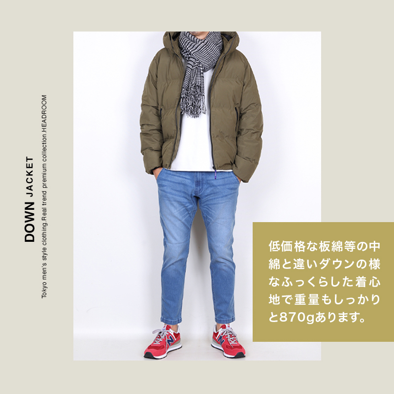低価格な板綿等の中綿と違いダウンの様なふっくらした着心地で重量もしっかりと870gあります。