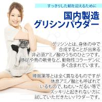 栄養補助食品として、1日3〜5gを目安に水などに溶かして摂取してください。 個人個人の体質で合わない場合もございますので、少量ずつ、ご自身で調整しながら摂取してみてください。 本品は医薬品ではございません。薬事法に抵触する可能性がございますので、具体的にはご自身でお調べ下さい。 グリシンは水に溶けやすく甘みがあります。甘みは糖分ではなくグリシン自体の味です。 なお、極まれに褐色・茶褐色の粉末が混じることがございますが、品質等には問題ございません。 | ||||||||||