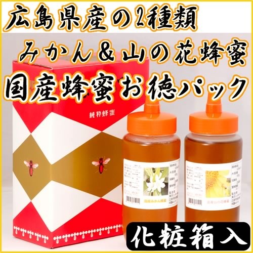 国産(広島県産)みかん蜂蜜&山の花蜂蜜 各500g×2本お徳パック 送料無料