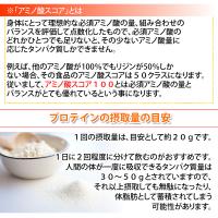 良質な大豆たん白素材で品質アップ。大豆臭が無く、すっきりとした良好な風味が特徴です。体に優しい植物性プロテインである大豆プロテインは、アミノ酸スコア100と栄養的にも優れたタンパク質で、 タンパク質の含有率がとても高く、グルタミンの含有量がホエイプロテインの2倍量も含まれている事が特徴として挙げられます。また大豆プロテインはお腹にたまり易いので満腹感が長時間続くことによりダイエット効果が期待できます。