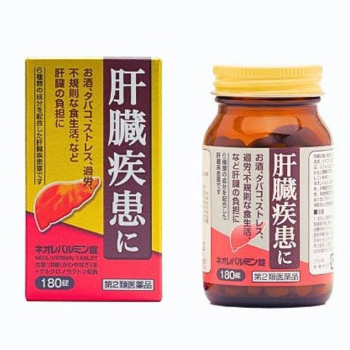 「ネオレバルミン錠 180錠」は、解毒作用を高め、肝機能を正常に保つ生薬の川柳末、有害物質の排泄を促進させるグルクロノラクトンなど6種類の成分を配合した肝臓疾患薬です。