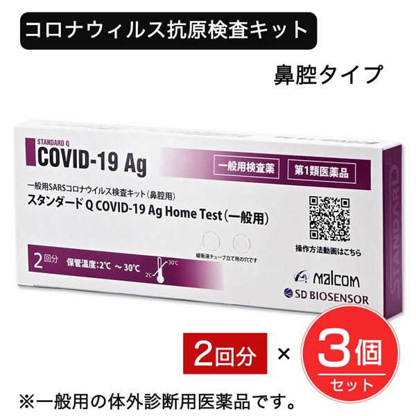 【第1類医薬品】 SARSコロナウイルス抗原検査キット スタンダードQ COVID-19 Ag 2回分×3個セット (6回分) ※使用期限 2027年3月8日まで