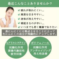 にんにくをじっくり熟成発酵させることにより、抗酸化作用のある「ポリフェノール」や「S-アリルシステイン」、健康維持に欠かせない「アミノ酸」などの有効成分が生にんにくより飛躍的にアップし、滋養強壮や疲労回復に効果的だと言われています。