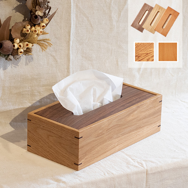 無垢材を使用した、高級感のあるティッシュボックスです。