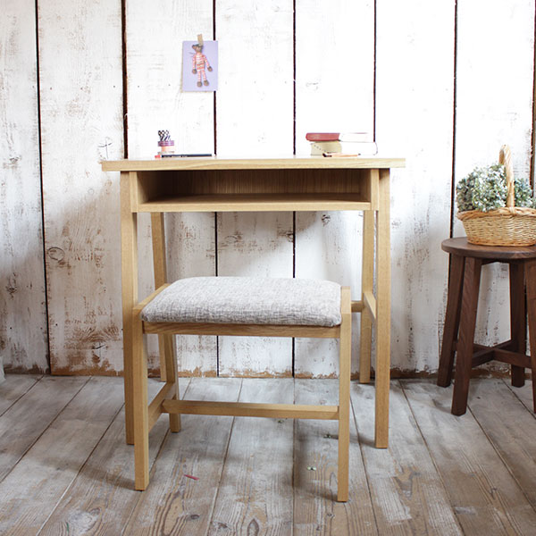 コンパクトサイズで、子供から大人まで使えるデスク。小学校で使ったような懐かしいデザイン。レトロな雰囲気がありながら、シャープな印象も。デスクと同シリーズのスツールをあわせて頂けます。永くお使い頂けるよう、シンプルなデザインに仕上げました。置きたいスペースに合わせて、サイズ変更も承ります。お子様ならお絵かき用のデスクにしたりリビングで宿題などができる様にサブの学習机としても。狭いスペースでも圧迫感がありませんので パソコンデスクや家事机にもぴったりです。