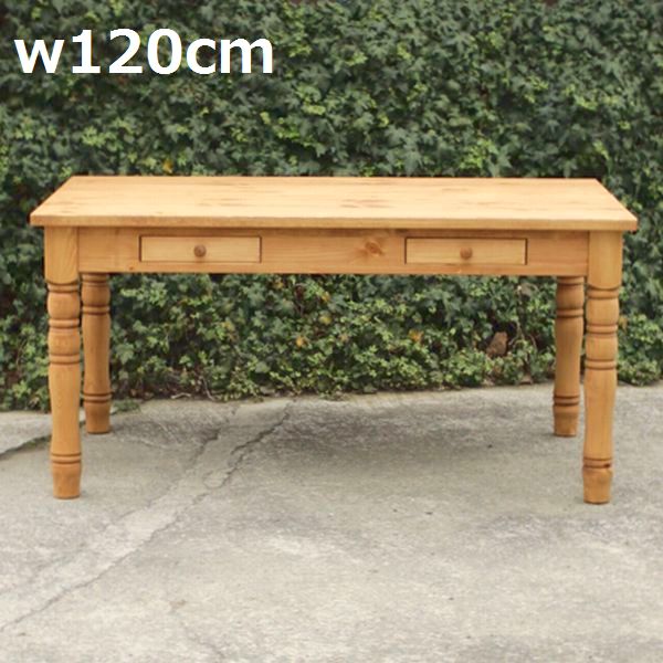 ダイニングテーブル ろくろ脚 木製 引出し付き パイン材 幅120cm 4人掛け 無垢 木製 テーブル リビングテーブル オーダー家具 北欧家具